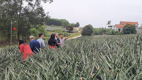Điểm nhấn đặc biệt trong chuyến đi là hoạt động tìm hiểu về chuỗi giá trị cây dứa Quỳnh Lưu – một nông sản đặc trưng nổi tiếng của vùng với hương thơm dịu mát, vị ngọt, giòn và thời gian canh tác dài đặc biệt: 18 tháng để cho thu hoạch, thay vì chỉ 12 tháng như nhiều nơi khác. Đoàn cũng đã đến thăm mô hình trồng dứa hữu cơ tiêu biểu của hộ anh Nguyễn Văn Thắng – một thành viên trong Hiệp hội Dứa Quỳnh Lưu. Với 5 ha dứa canh tác theo hướng hữu cơ, anh Thắng là một trong những nông hộ tiên phong mà Vieted đã đồng hành và hỗ trợ từ những ngày đầu năm 2014. Vieted đã kết nối, hỗ trợ anh tham gia các lớp tập huấn, xây dựng thương hiệu “Dứa Quỳnh Lưu” để tiếp cận thị trường siêu thị và vươn xa ra các tỉnh.