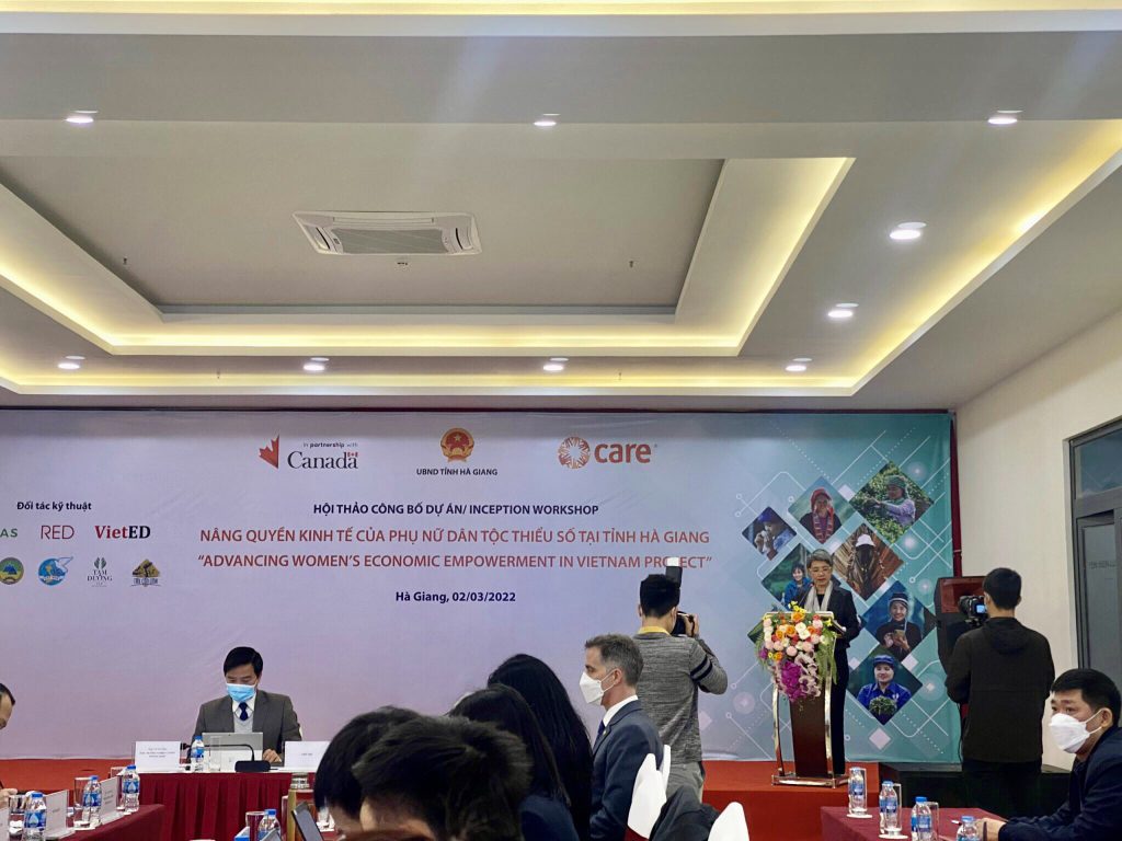 Ngày 02/03/2022, Tổ chức CARE Việt Nam đã tổ chức Chương trình Hội thảo Công bố dự án Nâng quyền kinh tế cho phụ nữ DTTS tại Hà Giang với sự tham gia của Đại sứ quán Canada; các đối tác dự án; lãnh đạo Hiệp hội, tổ chức các ban ngành huyện Quang Bình; và đại diện người hưởng lợi tại địa phương.