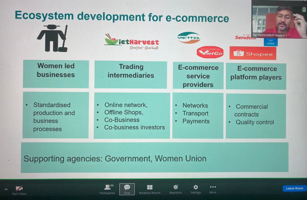 VietED và KisStartUp là hai đối tác được mời tham dự và có bài trình bày về các case điển hình và thành công trong trong việc áp dụng công nghệ I.40. Đặc biệt hội thảo ấn tượng với dự án mà VietED đang triển khai “Phát triển thị trường nông sản bản địa qua kênh thương mại điện tư do phụ nữ làm chủ trong khuôn khổ dự án GREAT với xu hướng cuộc cách mạng nông nghiệp 4.0“ tính tới thời điểm hiện tại, rất nhiều MOU đã được ký kết giữa các doanh nghiệp đồng hành như Vitettel post, Voso, Viet Harvest, các sàn shopee, Sendo, Lazada…
